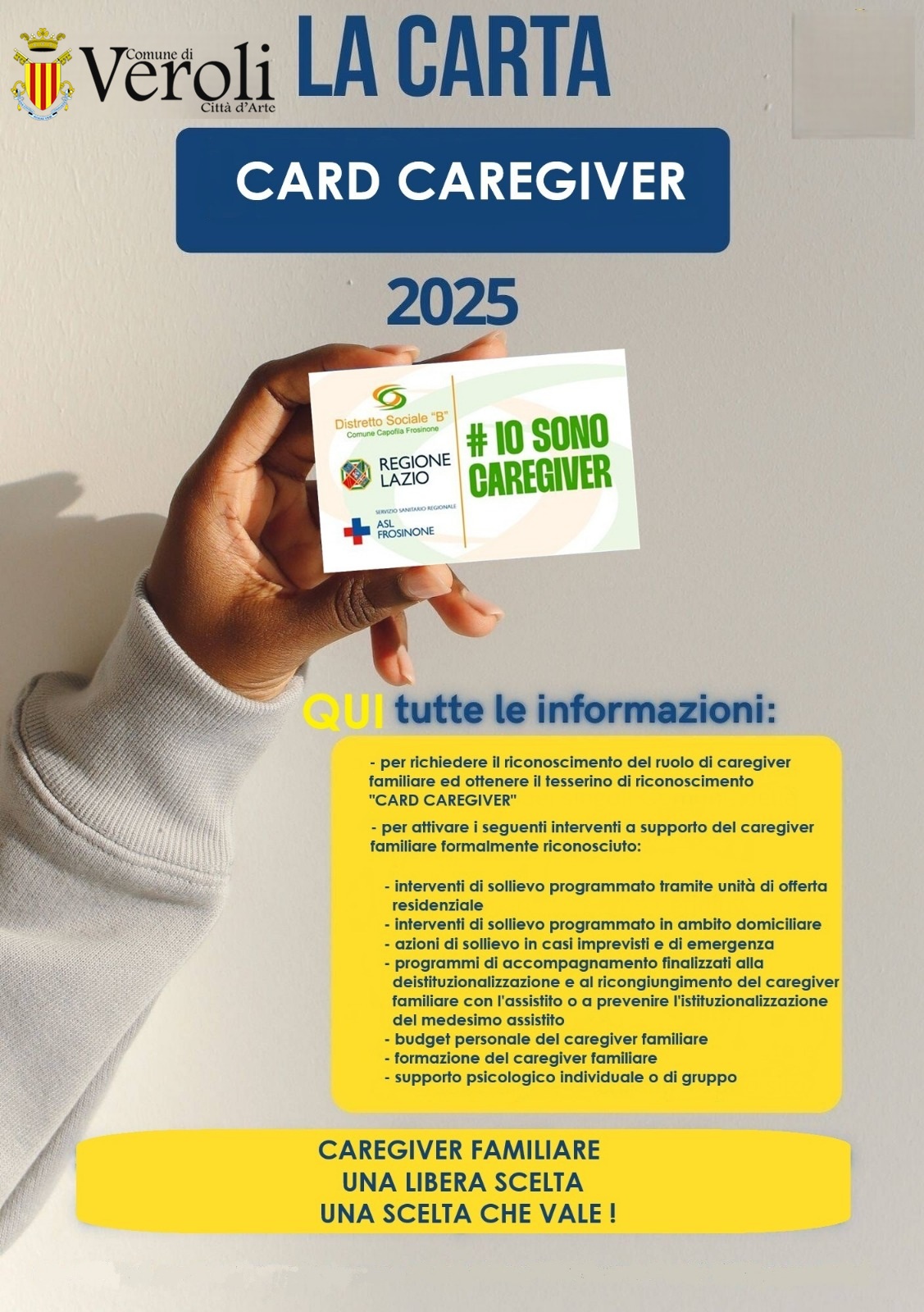 Si comunica che con Determinazione Dirigenziale n. 3617 del 23.10.2025 e Determinazione Dirigenziale n. 3653 del 28.10.2025, il Comune di Frosinone capofila del Distretto Sociale B ha approvato la Nota informativa relativa agli “Interventi finalizzati al riconoscimento del valore sociale ed economico dell’attività di cura del caregiver familiare”.